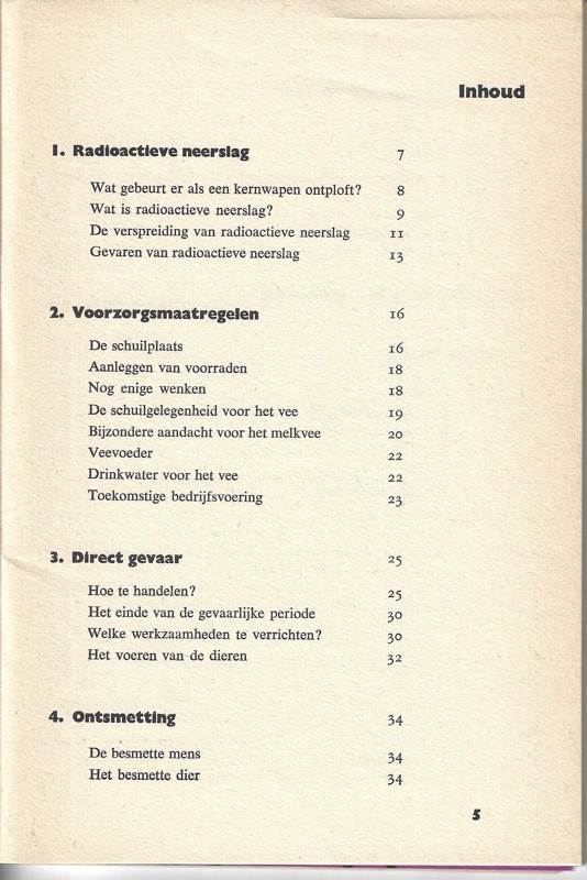 Dit boekje tracht, als voorzorgsmaatregel, kennis over de gevolgen van radioactieve neerslag te delen en daardoor gevolgen te kunnen beperken.