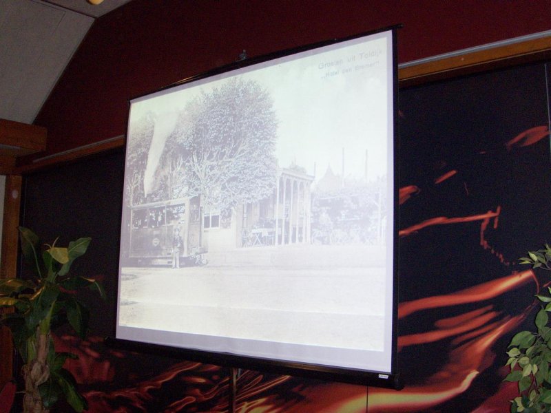 Hans Geerlink van de Historische Vereniging 'De Elf Marken' uit Gorssel nam ons mee op een reis langs het ontstaan en de exploitatie van de stoomtram-lijnen in de Achterhoek. Veel informatie daarover is vastgelegd in het boek 'Stoomtram Zutphen - Deventer 1926 - 1945'. Hans had zijn lezing mooi aangevuld met details over het traject Zutphen - Emmerik, dat door 'onze' dorpen Baak en Toldijk liep.